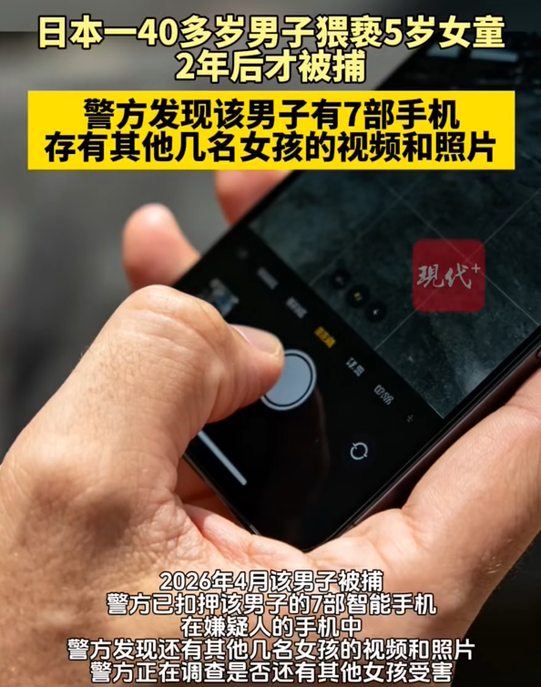 关键词: 2026-04-15 10:22:42  微博 据报道,4月11日,日本东京警视厅逮捕了一名46岁男子,他被指控在接送一名5岁女童往返残疾儿童机构期间,将她带回家中并对其进行猥亵,还用手机记录。根据公告,该男子于2023年6月至2024年3月期间在千叶县残疾儿童日托中心工作,负责接送残疾儿童。他持有幼教工作者资格证和幼儿园教师执照,此前曾在儿童福利机构和补习学校工作过。日本男子猥亵女童2年后被捕 警方正在调查是否还有其他女孩受害2024年2月22日,该男子涉嫌将一名千叶县残疾儿童日托中心的5岁女童带到其位于松户市的公寓,对她实施猥亵行为,并用手机拍摄。2025年11月,千叶县残疾儿童日托中心从外部渠道获得信息,从而发现了这起犯罪事件。警方已扣押该男子的7部智能手机,并计划对手机中的记录进行分析。在嫌疑人的手机中,警方发现除本案涉案女孩之外,还有其他几名女孩的视频和照片,警方正在调查是否还有其他女孩受害。 (责任编辑:0764)